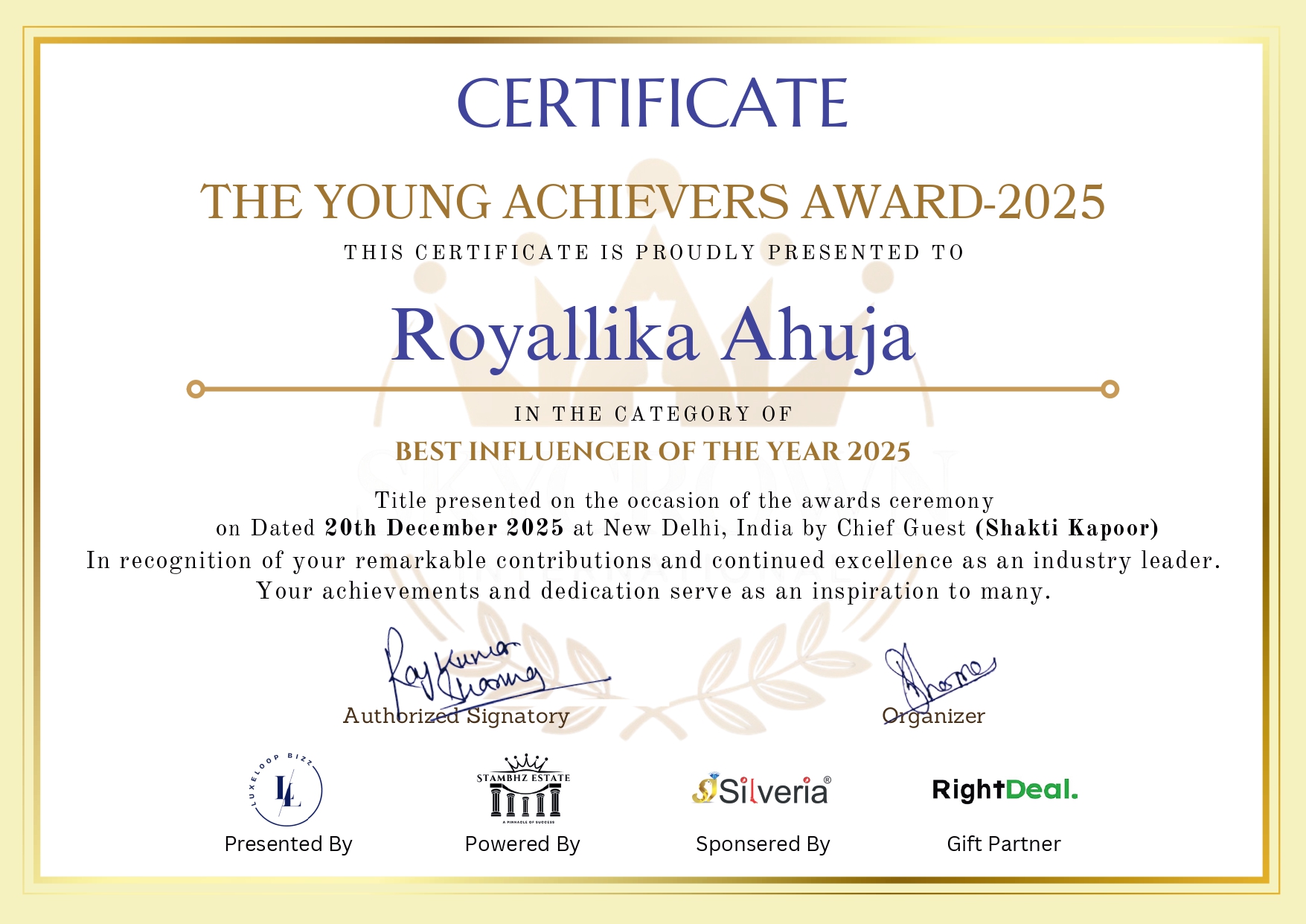 LuxeLoop Bizz is a premium brand of SkyCrown International, dedicated to helping businesses achieve excellence and recognition through elite award ceremonies and high-impact brand campaigns.